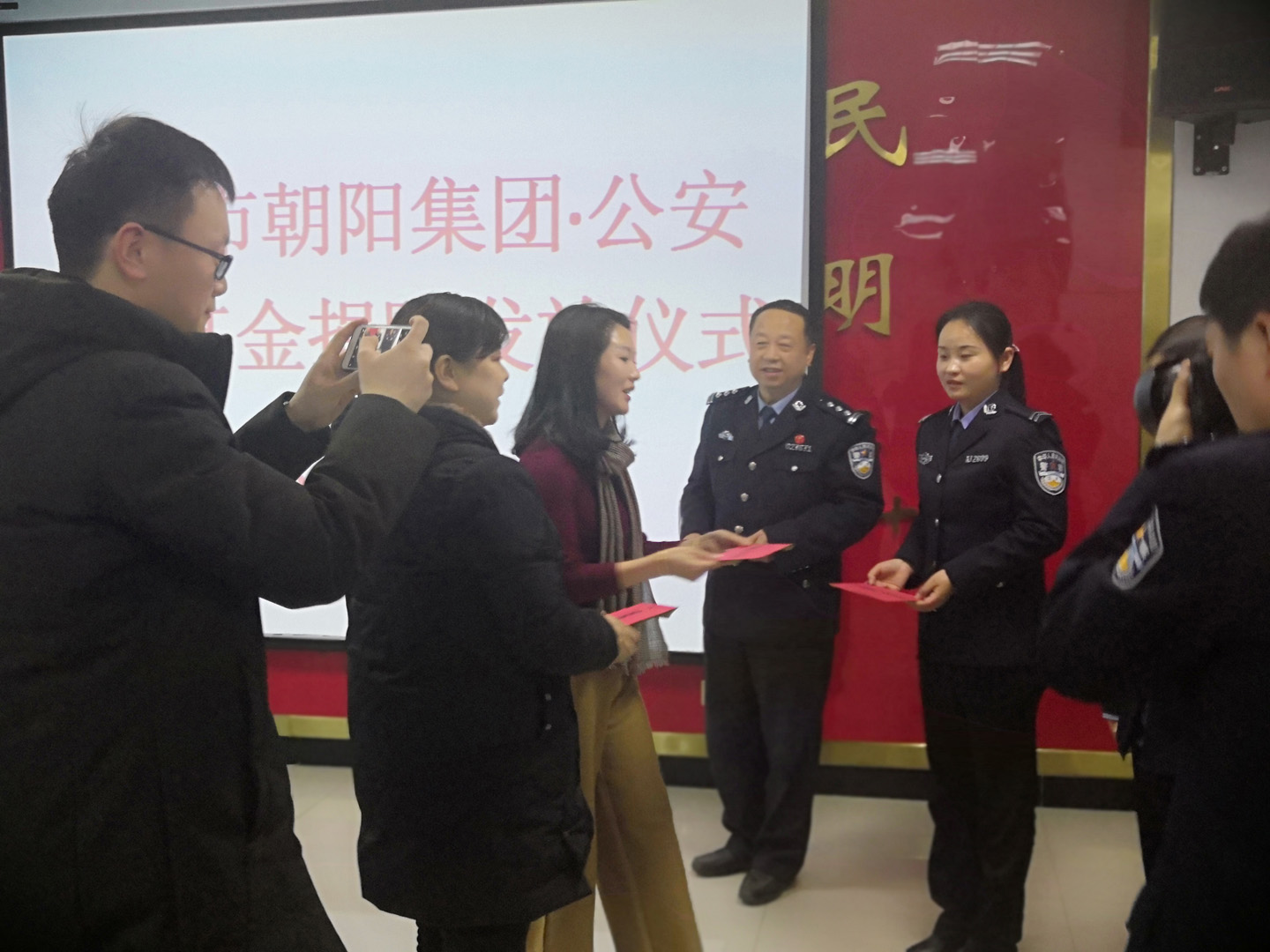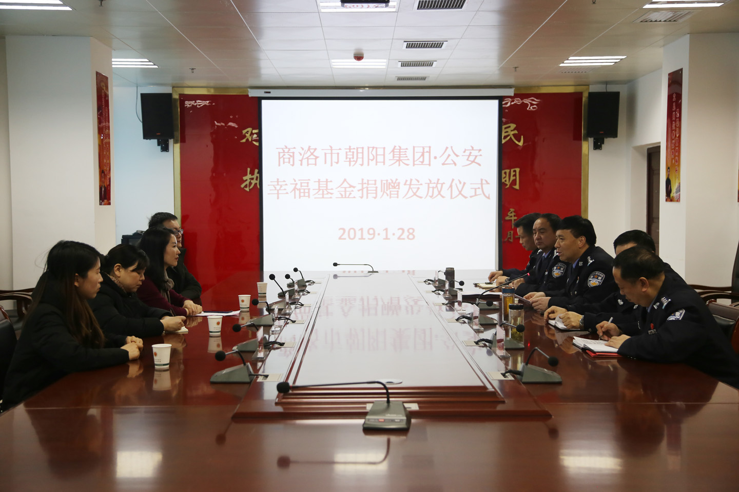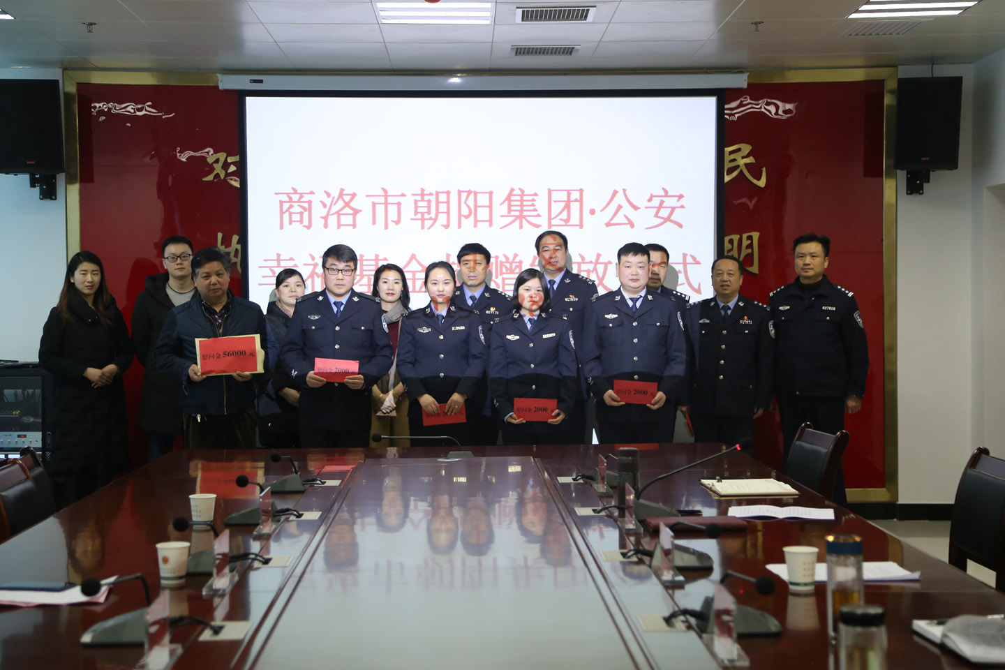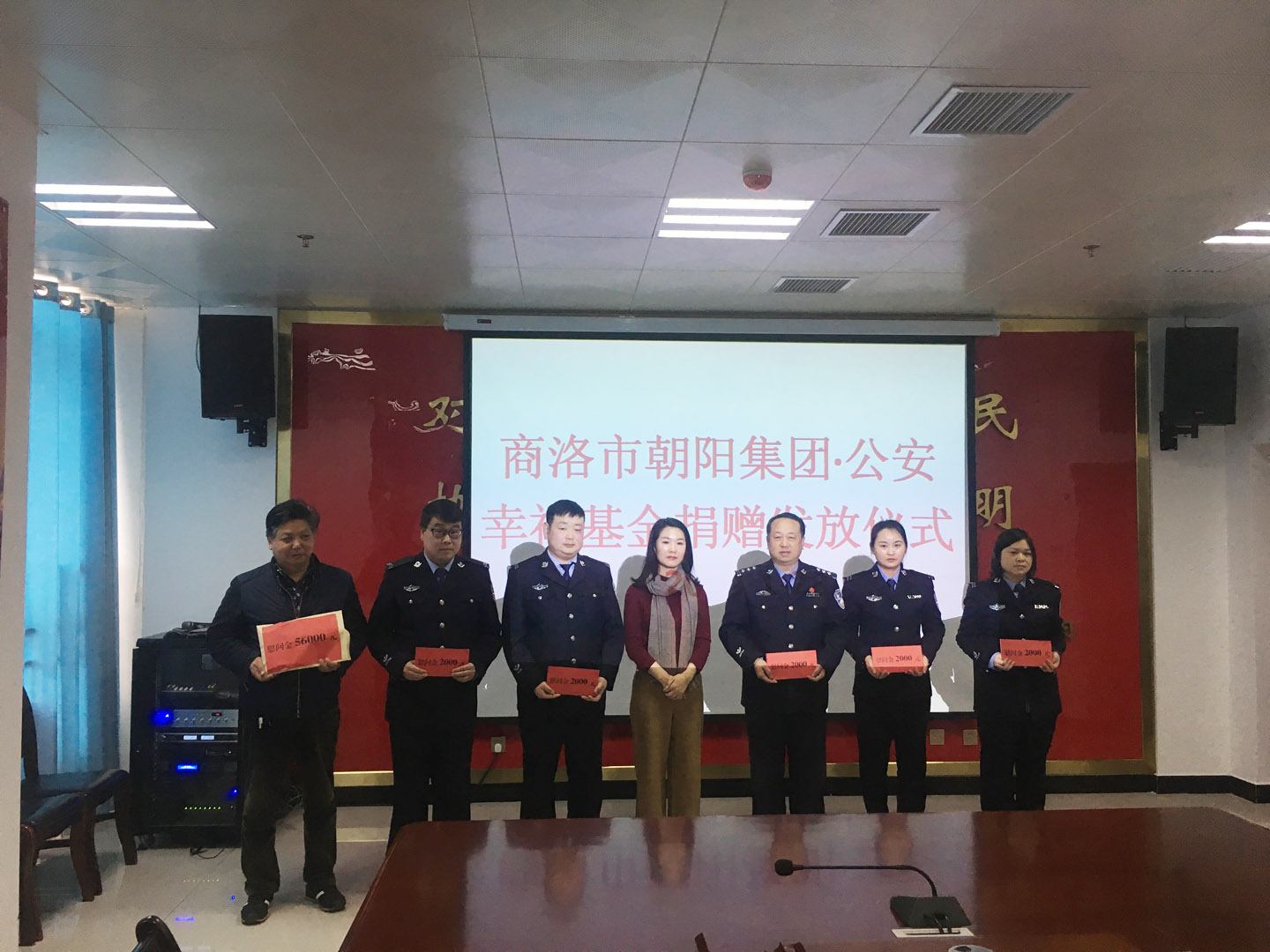 1月28日下午3時(shí)許,商洛市朝陽(yáng)集團(tuán)“幸?;稹本栀?zèng)儀式在商南縣公安局舉行,這是朝陽(yáng)集團(tuán)的“幸福基金”啟動(dòng)后,連續(xù)四年向公安機(jī)關(guān)困難民警發(fā)放資助金,累計(jì)發(fā)放近40余萬元、資助患病困難民警24名。商洛市朝陽(yáng)集團(tuán)公司副總暨幸福基金會(huì)會(huì)長(zhǎng)何方代表朝陽(yáng)幸?;饡?huì)和董事長(zhǎng)李勝前的深情厚意,與商南縣公安局長(zhǎng)李志學(xué)及領(lǐng)導(dǎo)班子成員一起,對(duì)張家進(jìn)、田培忠、黨世玉等8名患病困難民警進(jìn)行了慰問資助,以實(shí)際行動(dòng)體現(xiàn)了民營(yíng)企業(yè)對(duì)病困民警的親切關(guān)懷,讓他們深切感受到了來自企業(yè)的溫暖,同時(shí)也彰顯了朝陽(yáng)集團(tuán)“愛心做人,用心做事”的企業(yè)精神。
