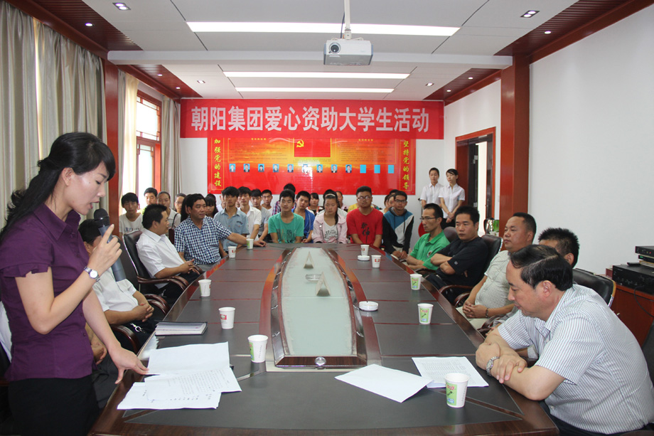 2014年8月,朝陽集團出資10.4萬元資助了我縣任家溝、二道河、張家崗、后灣、五里鋪、十里鋪等6個村共52名貧困大學(xué)生。家住十里鋪村的陳金玉同學(xué)代表受資助的學(xué)生發(fā)言,她除了感謝朝陽集團扶危濟困的高尚品德外,還談了她家的貧困狀況:她在讀小學(xué)六年級時,母親因病去世,讀高二時,父親也因病去世。孤苦伶仃的她只有靠哥哥去山西煤礦打工掙錢維持她上學(xué)。當她考上大學(xué)正愁無錢上學(xué)時,是朝陽集團伸出了援手。她表示一定要好好學(xué)習(xí),以實際行動報答哥哥和朝陽集團的關(guān)愛。她的發(fā)言,深深地打動了李勝前董事長的心。李勝前董事長當即表態(tài),陳金玉同學(xué)今后四年上大學(xué)他每年都要資助,直到完成學(xué)業(yè)。